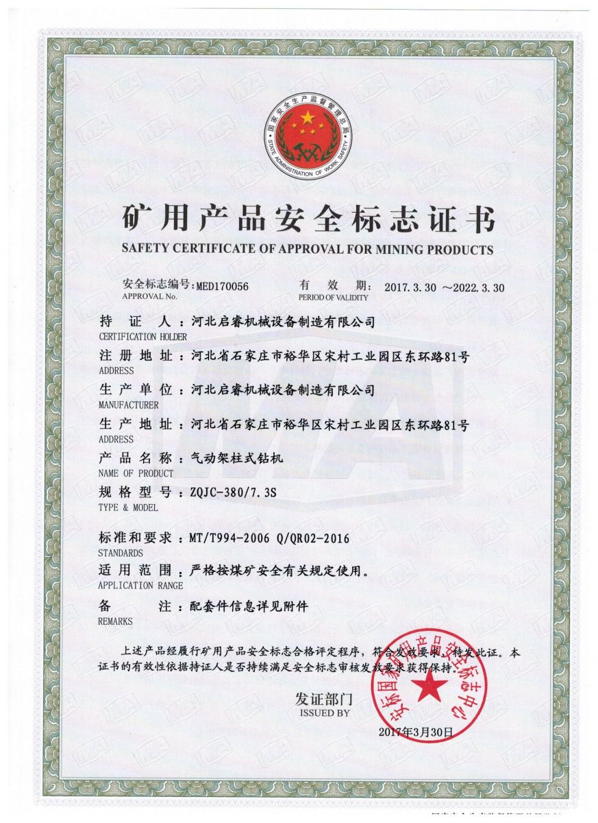 山西晉城新開的礦需要采購一大批煤礦機械設備,啟睿銷售人員恰好在晉城簽一批手持鉆機的合同,從客戶那了解到這個新礦的招標情況,就按照招標要求送去了氣動架柱式鉆機的材料。啟睿的氣動架柱式鉆機有安標證,通過了ISO9001質量管理體系認證,符合礦方采購要求。