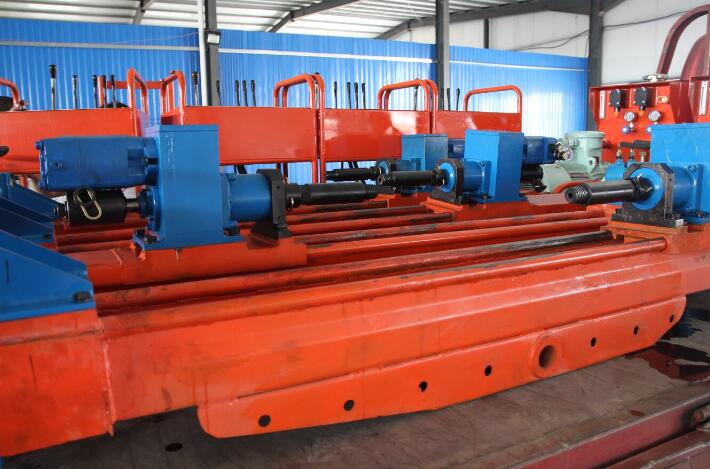 目前礦上常用的煤礦探放水鉆機主要有坑道鉆機、全液壓坑道鉆機、氣動架柱式鉆機、架柱式液壓回轉鉆機、深孔鉆車幾大類。坑道鉆機為立軸式結構,角度調節過程繁瑣,多用來打近水平孔;全液壓坑道鉆機是應用廣泛的機型,在鉆進效率、鉆進深度及整體性能上都較好;氣動架柱式鉆機、液壓架柱式鉆機在滿足井下打孔要求的前提下突出的特點就是輕便,立柱支撐、分體是結構大大降低井下人工移動安裝鉆機難度;深孔鉆車一般為履帶式,能自助行走,鉆進深度較大,但對行走和施工空間有要求,并不廣泛適用。