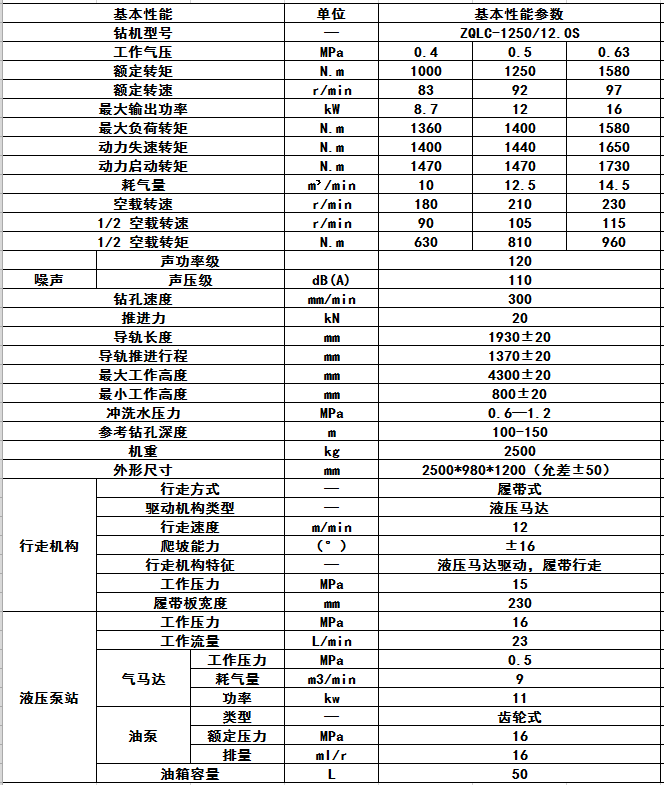 ZQLC-1250/12.0S氣動履帶式鉆機是我公司生產(chǎn)的新一代履帶行走式鉆機。是一種以壓縮空氣為動力,履帶行走式輕型深孔鉆機。適用于煤礦井下采用高效螺旋鉆桿和硬質(zhì)合金鉆頭在煤層中的探水、探瓦斯及瓦斯抽放孔的施工。