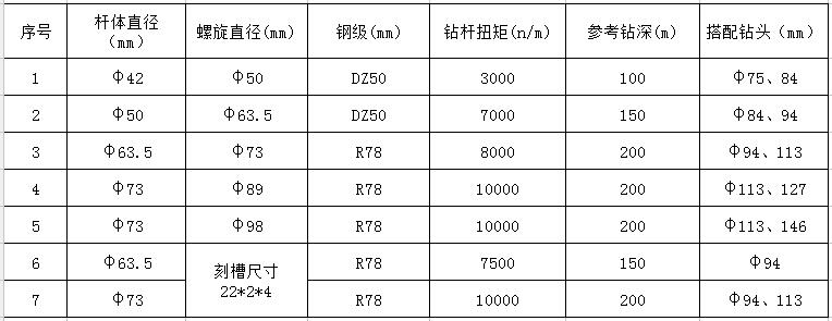 肋骨鉆桿是在地質鉆桿的基礎上,采用高耐磨平面螺旋葉片,經預應力纏繞全自動焊接而成。鉆桿桿體采用優(yōu)質地質鉆探專用合金鋼管,鉆桿接頭采用優(yōu)質合金結構鋼,經高壓成型、真空調質處理、是摩擦焊接等生產工藝加工而成;肋骨鉆桿在松軟煤層和沖擊地壓條件下大大降低了鉆桿抱死、鉆具損壞丟失現象。另外,由于肋骨鉆桿較寬的螺旋葉片,使得肋骨鉆桿在鉆孔施工中不會切削鉆孔的孔壁,不會造成孔壁的偏斜而影響鉆孔效果。刻槽鉆桿也稱為本體肋骨鉆桿,是在加厚優(yōu)質合金鋼管的基礎上,利用數控加工工藝,進行管體銑槽,相對于肋骨鉆桿而言,刻槽鉆桿具備了肋骨鉆桿排渣速度快、旋轉阻力小的優(yōu)勢,同時在進行深孔鉆探時,由于一體式的設計工藝及其壁厚的優(yōu)勢,其耐磨性能更好,使用壽命更長。