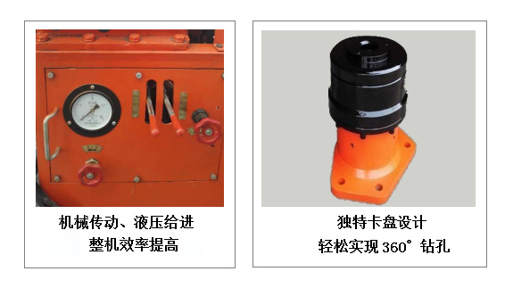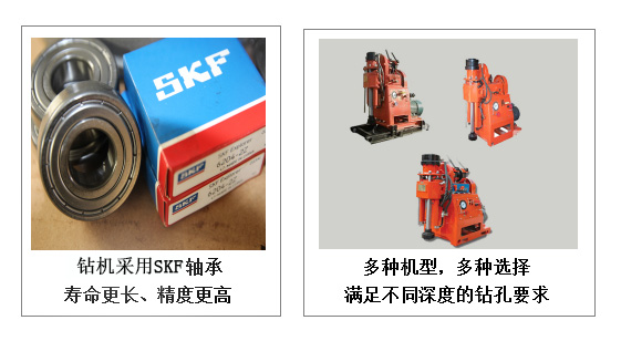 金(金剛石)鉆頭回轉(zhuǎn)鉆進,同時也可以配套不同的鉆桿和鉆頭適應不同的