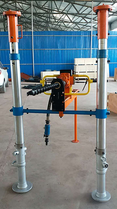 用途: ZQSJ-140氣動架柱手持式鉆機是在手持式鉆機的基礎上設計生產的輕型架柱式鉆機,該鉆機主機和架柱與其它氣動架柱式鉆機相比重量要輕很多,移動安裝方便。與普通氣動手持式鉆機相比,該鉆機鉆進施工在架座上完成,省力很多,操作過程更輕松。因此,非常適合煤礦短探施工。